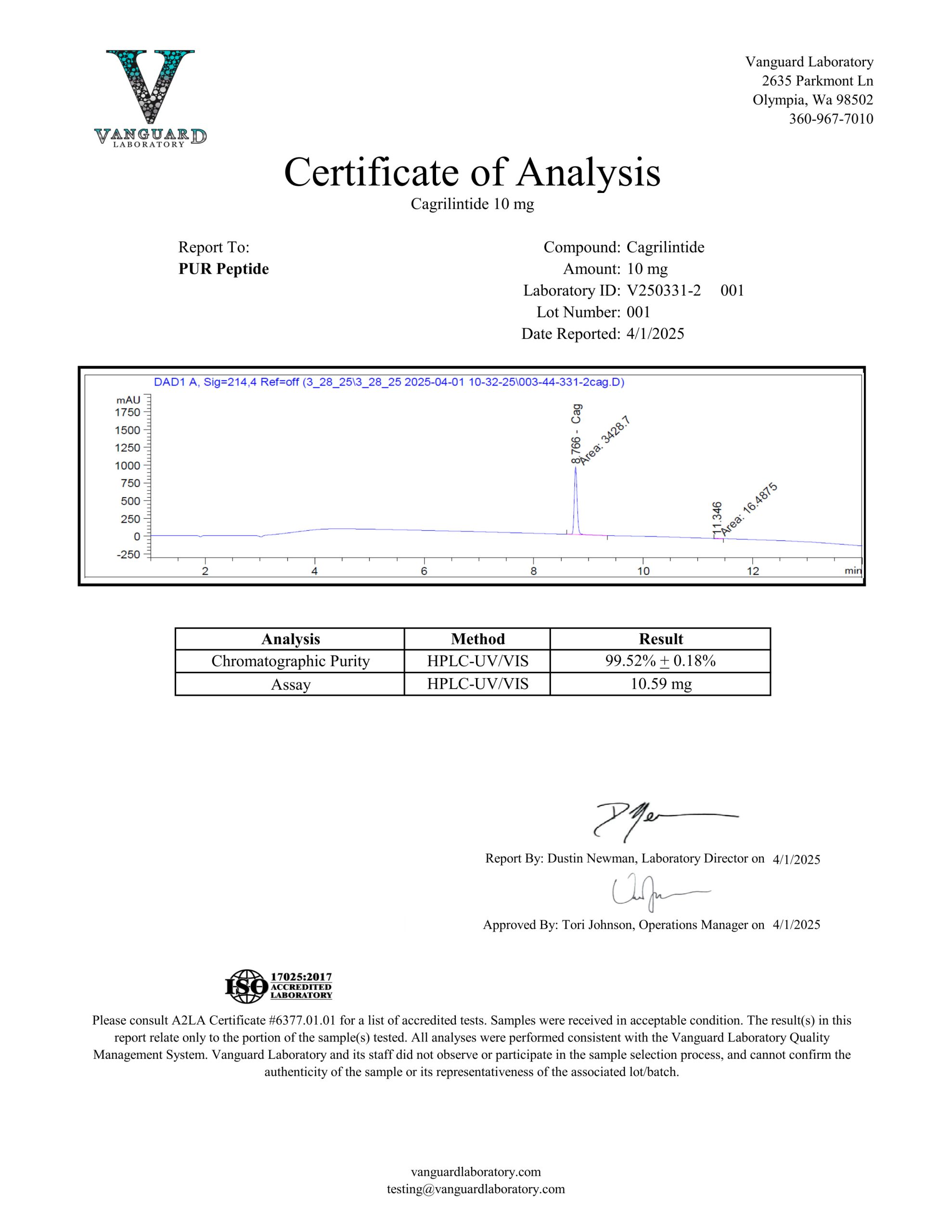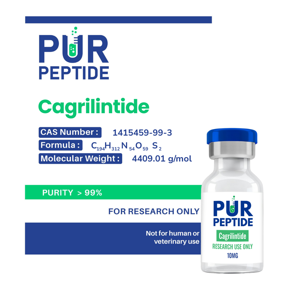 Each vial of Cagrilintide contains lyophilized powder. This freeze-dried compound requires reconstitution before use and is intended strictly for in vitro laboratory research.