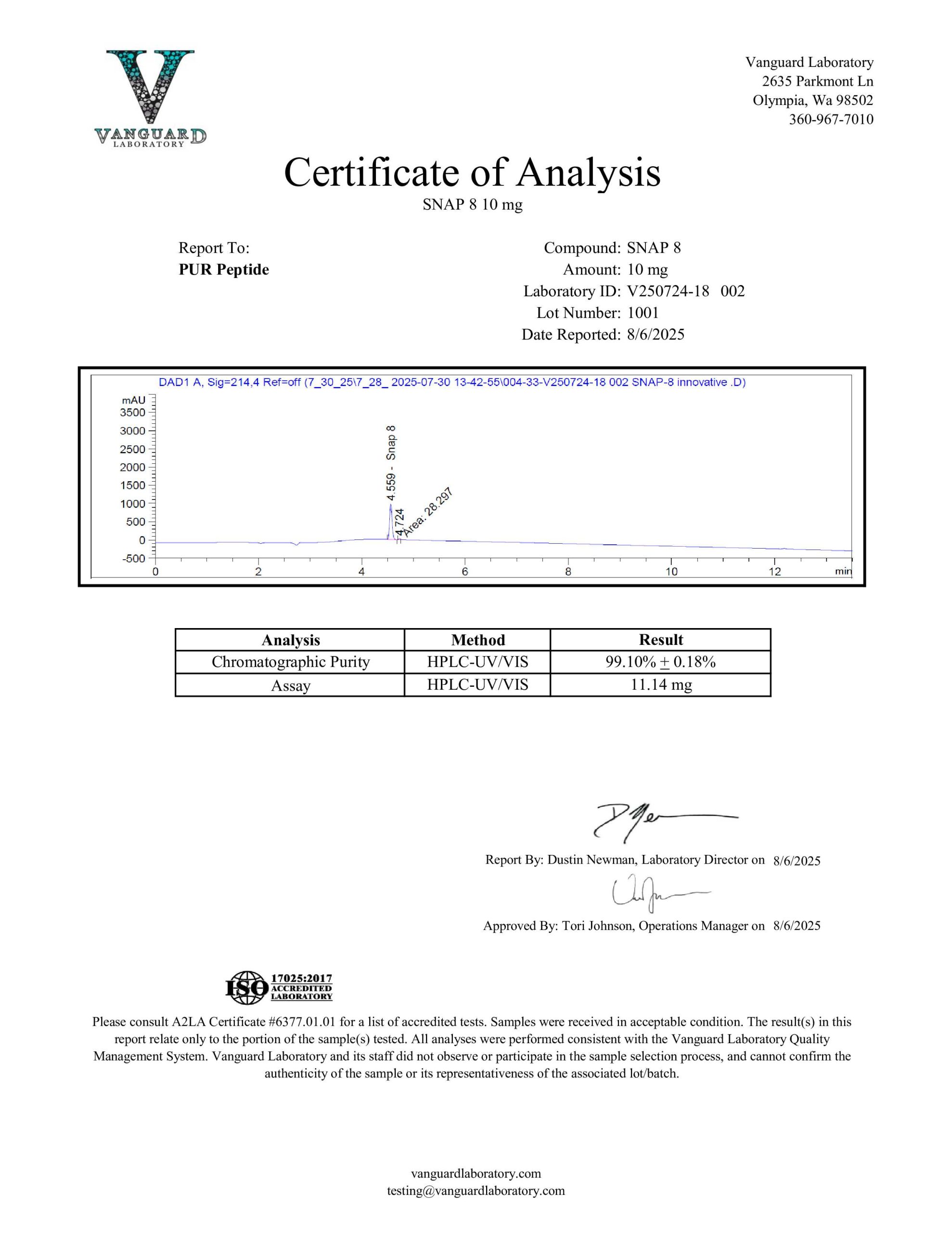 Each vial of SNAP-8 contains 10mg of lyophilized powder. This compound requires reconstitution before use and is intended solely for in vitro research purposes.